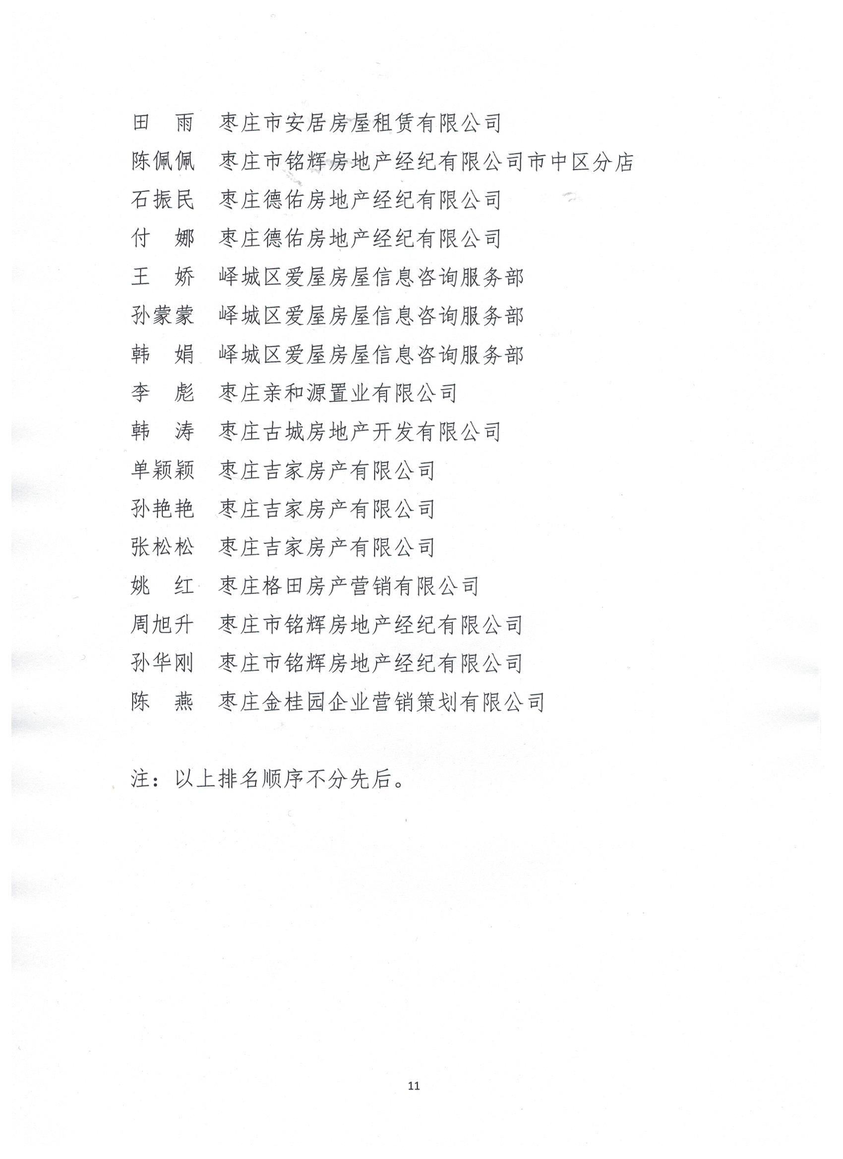 枣庄市房地产业协会关于印发全市房地产业2019年度争先创优评选结果的通知