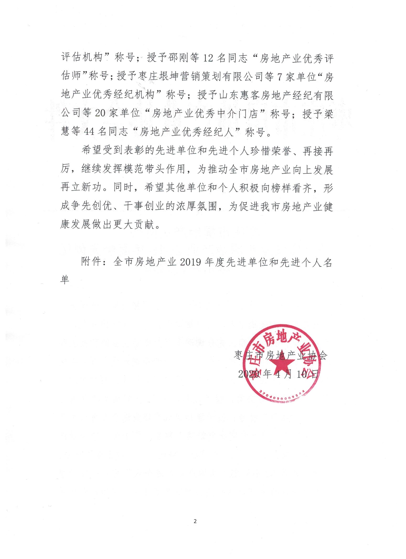 枣庄市房地产业协会关于印发全市房地产业2019年度争先创优评选结果的通知